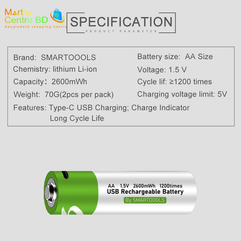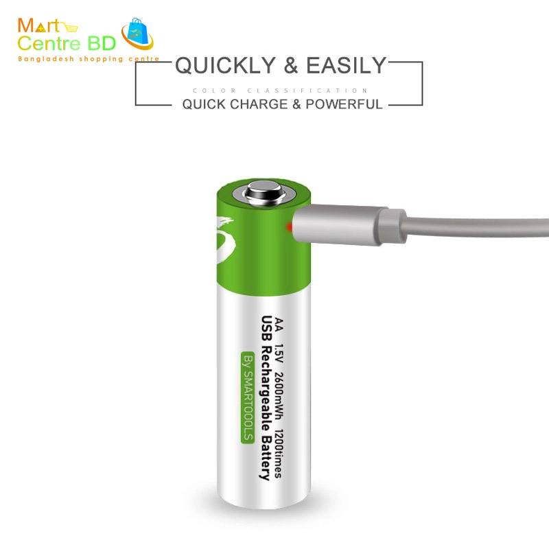 USB Type-C ফাস্ট চার্জিং রিচার্জেবল AA 1.5V ব্যাটারি আপনার জন্য একটি দারুণ বিকল্প হতে পারে। এটি ব্যবহার করে আপনি সহজে এবং দ্রুত আপনার ডিভাইসগুলো চালু রাখতে পারবেন।