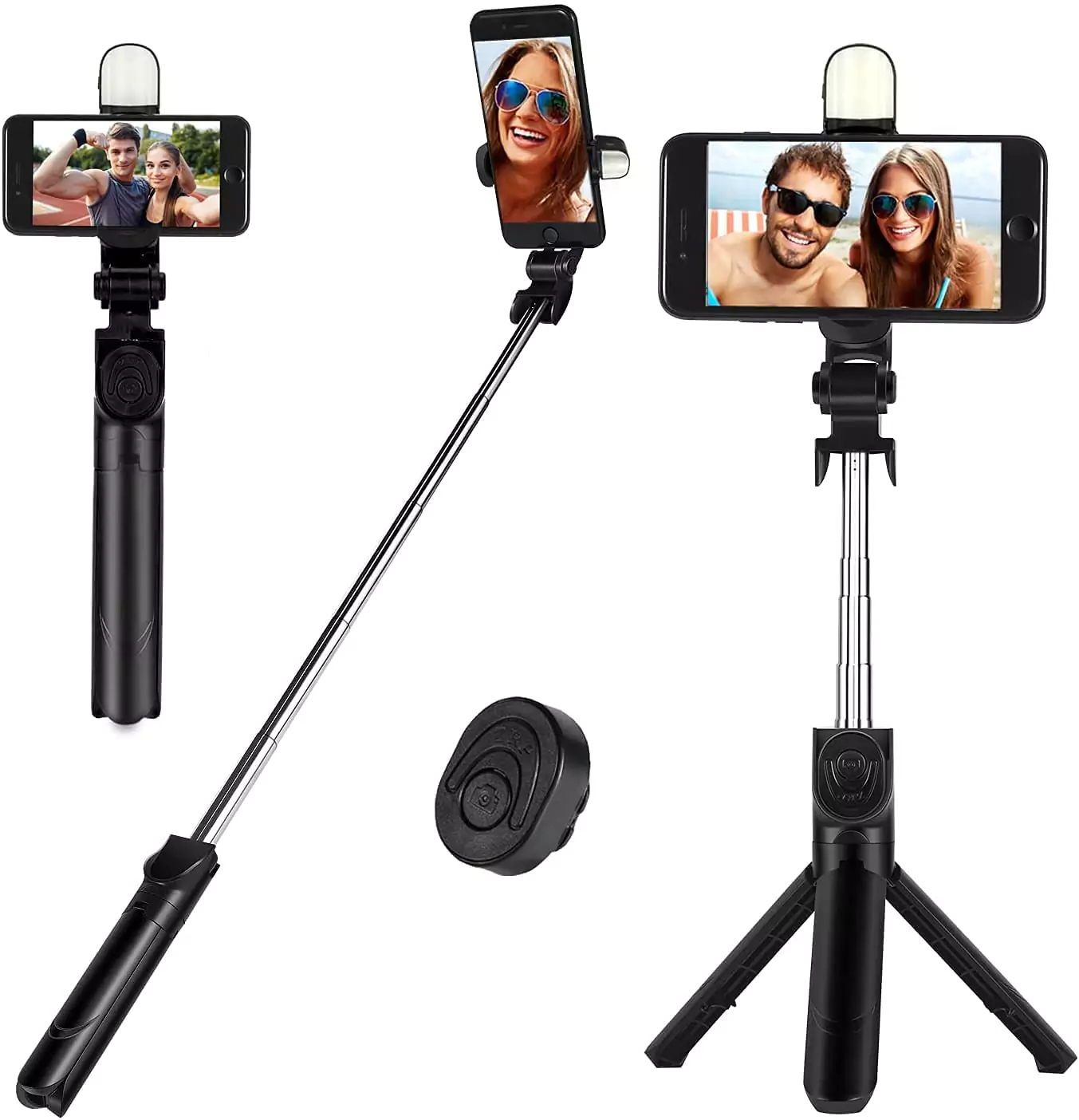 - Bluetooth Selfie Stick is provided with a tiny wireless remote that can be connected to your phone and can be used up to about 15 Ft.